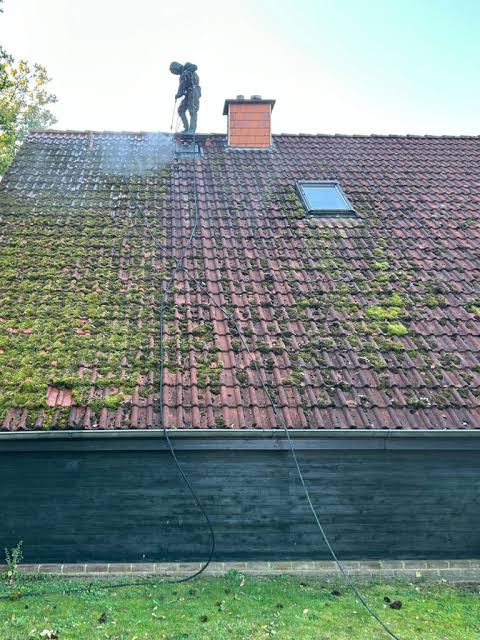 Ein sauberes Dach ist nicht nur schön anzusehen, sondern schützt auch langfristig die Bausubstanz Ihres Hauses. Moos, Algen und Schmutz setzen Dachziegeln zu und können auf Dauer Schäden verursachen. Unsere professionelle Dachreinigung entfernt gründlich alle Ablagerungen – schonend, effektiv und ohne Beschädigung der Oberfläche. Mit modernster Technik und geeigneten Reinigungsmitteln sorgen wir dafür, dass Ihr Dach wieder aussieht wie neu und dauerhaft geschützt bleibt.